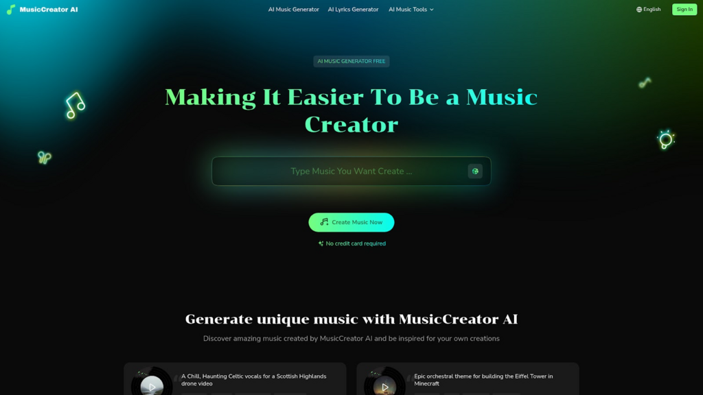 If you want to create music easily, quickly, and for free, MusicCreator AI is a perfect choice. You can start right away, with no credit card needed. Let your creativity flow and see where MusicCreator AI can take your music journey!